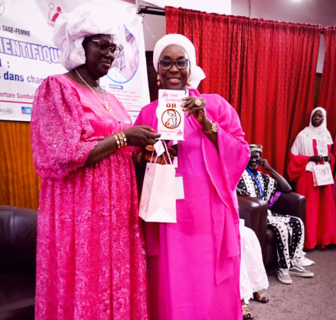 Mme Diop Yoni Gueye enseignante décorée sage femme modèle Or par ANSFES lors des journées scientifiques 2025